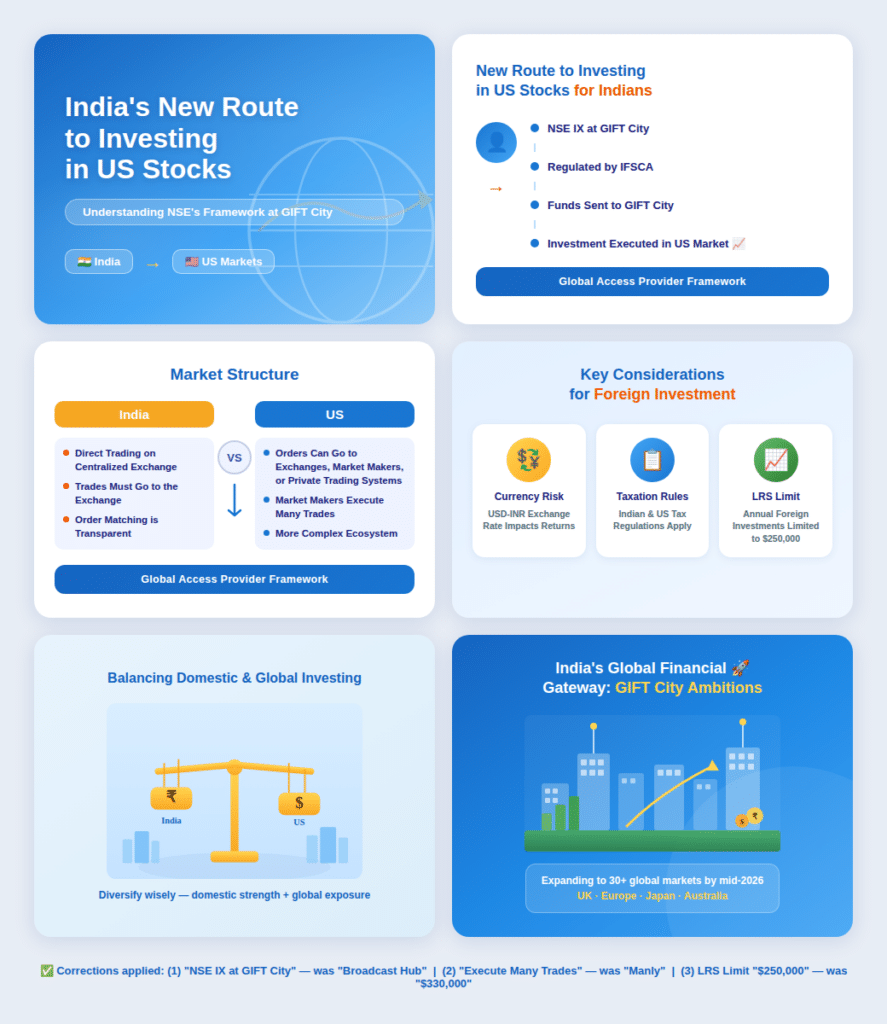 NSE’s international exchange at GIFT City launched what it calls the Global Access platform, and for the first time, Indian investors can buy US stocks while staying within an Indian-regulated framework. If you’ve heard about this and want to understand what actually changed not just the marketing version of it this guide is for you.