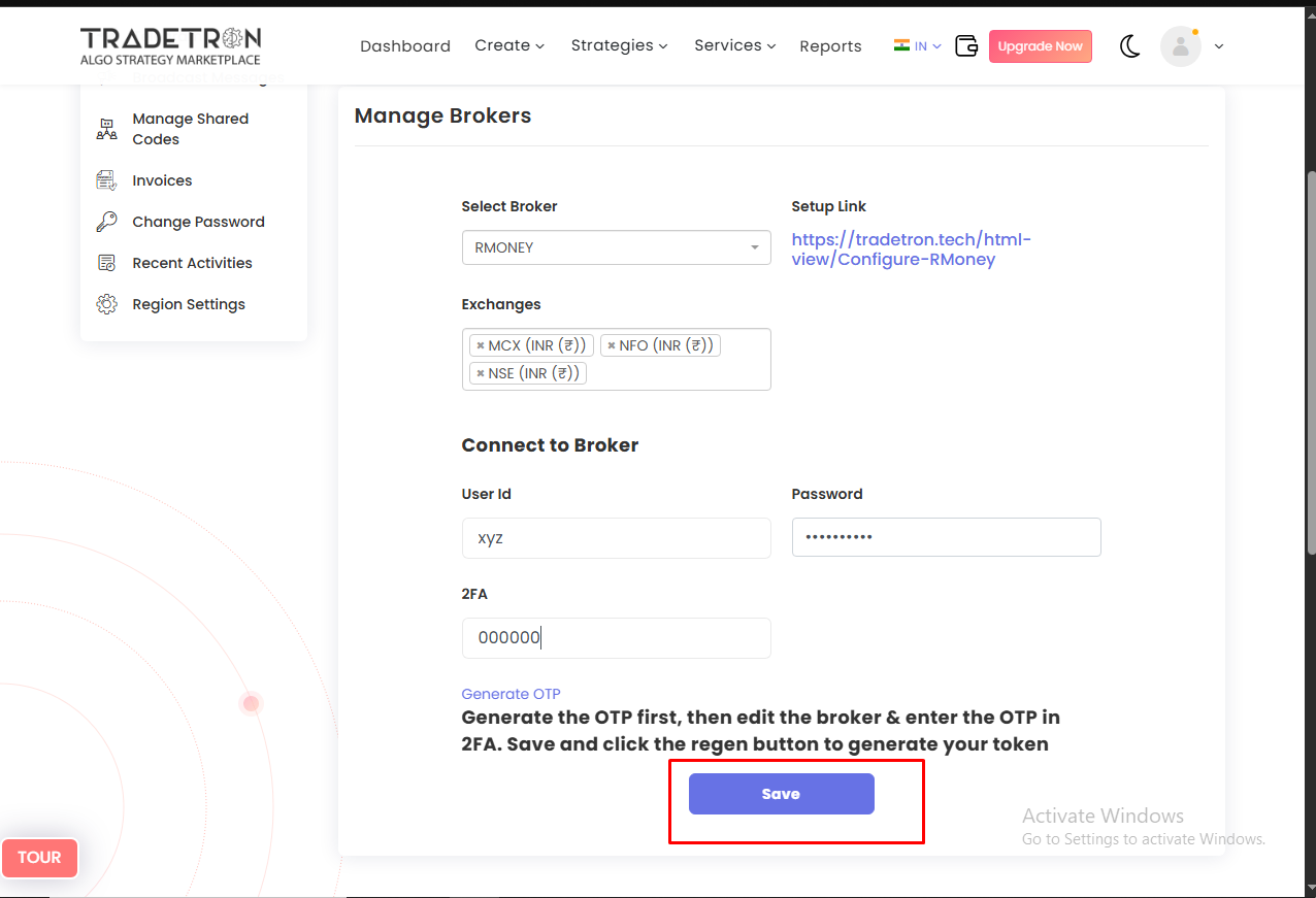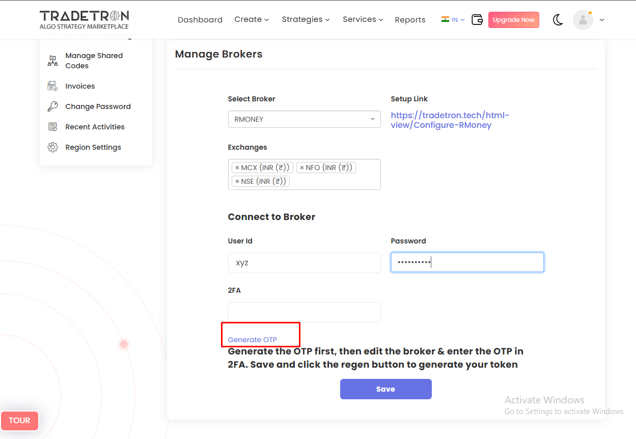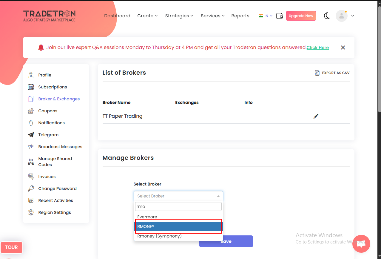 In the “Select Broker” search bar → type RMoney → select RMoney (if you are using RMoney ODIN Platform).