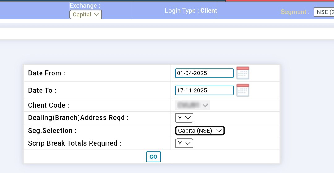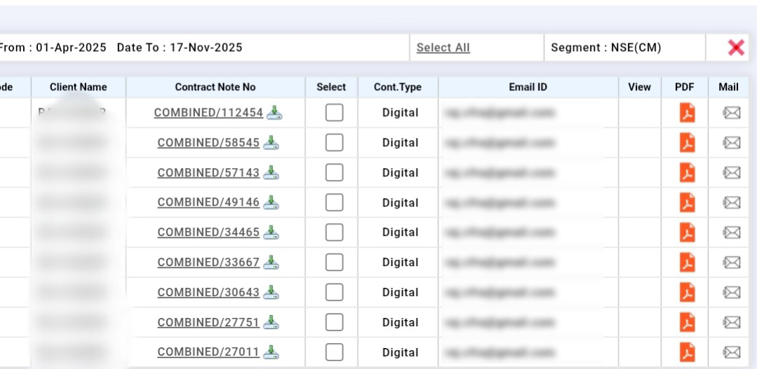 Choose the relevant segment (Equity / F&O / Currency / Commodity) for which you want to download the contract note.