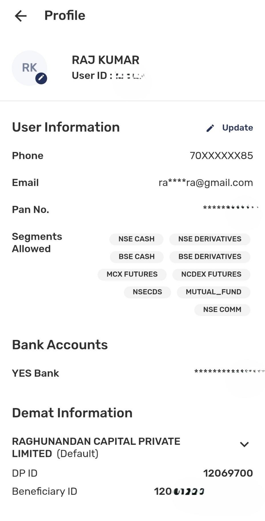 | Contract Notes | DP Name, DP ID, Demat ID |