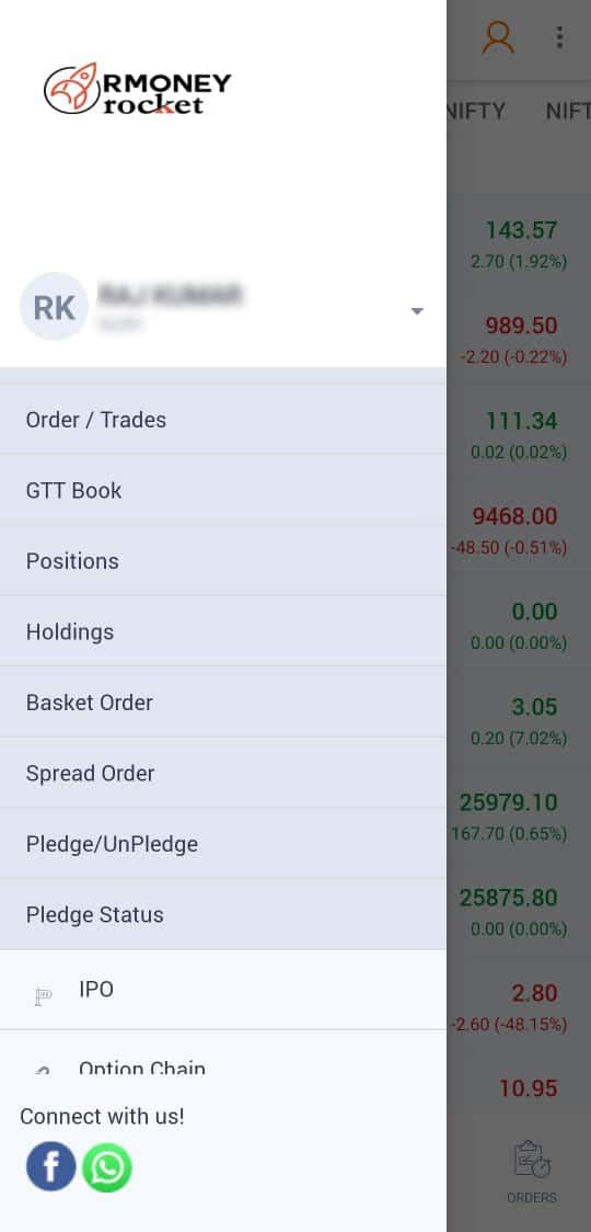 You can easily pledge your securities on the RMoney Rocket App to get margin for trading. Follow the steps below: