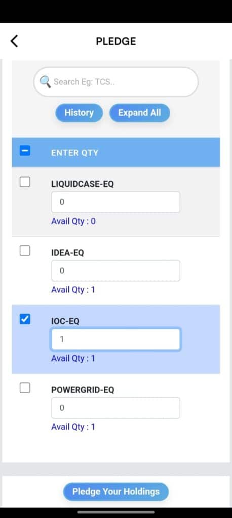 • Check available quantity: Ensure the pledged quantity does not exceed the shares available in your account.
